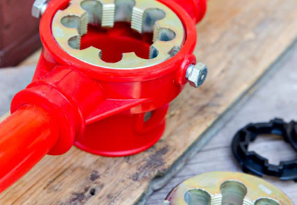 Familia SP Terraja SP 3 en 1 Terraja estrella Con cojinetes de acero Resistente, liviana y práctica. Permite el roscado de tres tubos de tres medidas distintas sin cambiar cojinetes ni guías, sólo se deberá utilizar el cabezal deseado, usando los dos restantes de manija para girar